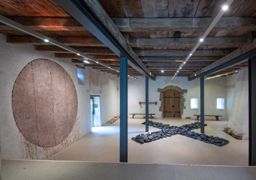 Die Ausstellung seiner ortsspezifischen, ausgreifenden Werke in Kirche und Hof wurde aufgrund der grossen Resonanz verlängert und ist weiterhin zu erleben. |